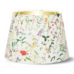 This charming lampshade is bursting with blooms. It features delicate wildflowers digitally-printed onto a neutral background. Although green foliage dominates the design, you’ll spot a wide range of colours on the shade. Everything from deep red poppies to delicate blue forget-me-nots. It also features a luxurious gold metallic fabric lining. This provides a warm ambience when the shade is in use.